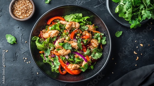 salad, chicken, vegetable, healthy, fresh, dining, meal, colourful, epicure, cookery, greener, vibrant, nourishment, ingredient, culinary, plated, snack, organic, dressing, pepper, herb, appetising, delicious, table, serving, bowl, food, ready, nutrient, tasty, dish, vegetable, eatery, lunch, dinner, fitness, cooking, style, eating, savoury, receipe