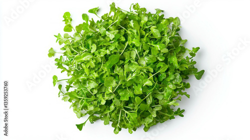 Fresh cress salad with avocado on white background for healthy eating and vegan cuisine