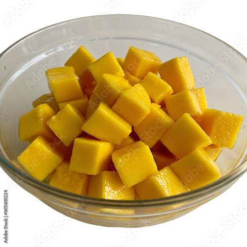 Fresh Cut Mango Cubes In Glass Bowl Isolated Transparent Background Photo
