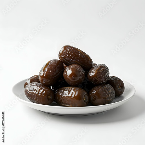 Fresh Dates on a Plate Isolated on White Background – High-Quality Food Photography