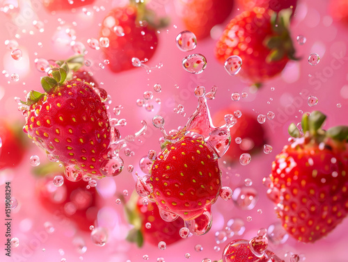 strawberry, berry, levitation, juicy, floating, splash, droplet, harvest, water, air, drop, ripe, effect, pink, background, bright, vibrant, delicious, summer, sweetness, food, organic, healthy, refreshing, dessert, appetising, colourful, texture, glossy, nourishment, composition, natural, freshness, indulgence, epicure, elegance, aesthetic, growth, aroma, favor, visual, scene, surreal, beauty, enjoyment, culinary, presentation, sharpened, health