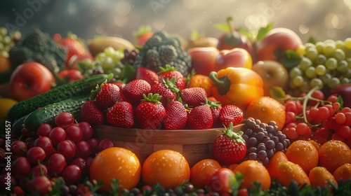 fruit, strawberry, orange, grape, red, green, yellow, healthy, food, diet, fresh, ripe, citrous, berry, cucumber, vegetable, vitamin, colourful, nature, still, life, produce, epicure, juicy, sweet, delicious, natural, organic, harvest, abundance, vibrant, summer, garden, farm, market, tasty, photo, composition, table, bowl, background, texture, light, shadow, water, drop