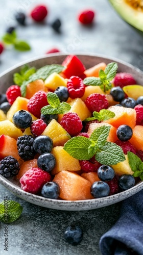 fruit, salad, fresh, berry, mint, raspberry, blueberry, blackberry, cantaloupe, honeydew, watermelon, healthy, colourful, summer, dessert, snack, vibrant, food, cookery, organic, ripe, tasty, natural, garden, clean, vegetarian, diet, plate, bowl, ingredient, nourishment, freshness, epicure, sweet, seasonal, culinary, decoration, wellness, harmony, casual attire, rustic, appetising, feast, delight, banquet, picnic, enjoyment, homemade, arrangement