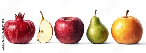 pomegranate, pear, apple, fruit, red, green, yellow, healthy, vitamin, sliced, juicy, crisp, alimentary, delicious, organic, seasonal, whole, slice, health food, nature, nourishment, food, vibrant, colourful, fresh, natural, tasty, ripe, sweet, nourishment, diet, healthy eating, freshness