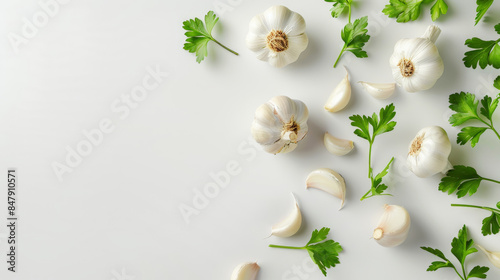 garlic, parsley, fresh, herb, spice, clove, bulb, white, background, ingredient, vegetable, organic, natural, healthy, food, cooking, kitchen, culinary, aroma, leaf, botanical, green, nourishment, favor, seasoning, garden, plant, raw, vegetarian, spice, leafy, freshness, clove, root, bunch, texture, closeup, epicure, delicious, clean, whole, uncooked, nature, peppercorn