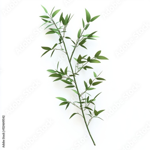 Fresh Green Branch with Leaves on White Background