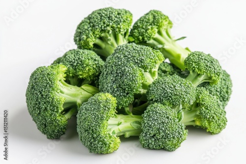 Fresh green broccoli florets on white background