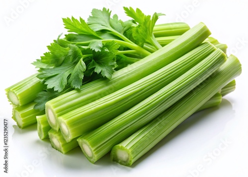 celery, vegetable, green, food, healthy, fresh, organic, ingredient, diet, cooking, salad, photo, white background, isolated, closeup, macro, texture, crisp, alimentary, plant, stem, leaf, produce, farm fresh, raw, vegan, vegetarian, healthy eating, natural, epicure, receipe, culinary, food photography, hi-res, background, image, picture, illustration, photo, design element, high-quality, detailed, sharp