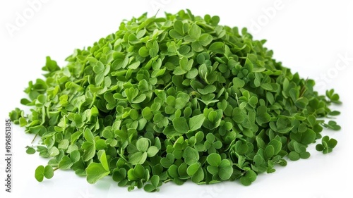 Fresh green clover leaves piled together, perfect for presentations on nature, health, and organic farming.