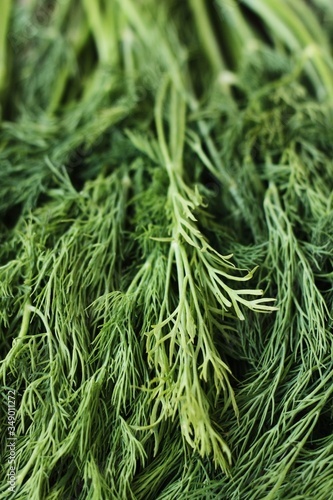 Fresh green dill on the table macro
