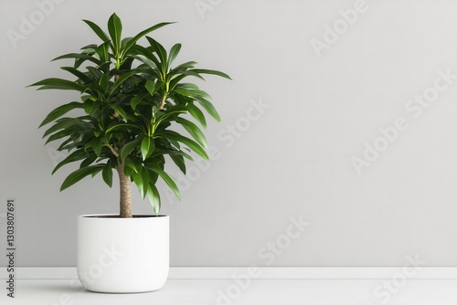 Fresh Green Indoor Plant in Minimalist White Pot on Clean Neutral Background