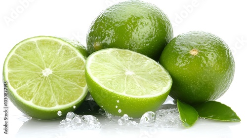 lime, lime, fruit, citrous, green, leaf, water, drop, fresh, organic, healthy, juicy, sour, tropical, summer, food, ingredient, nature, vitamin, beverage, cocktail, drink, zest, rind, juice, slice, half, whole, isolated, white, background