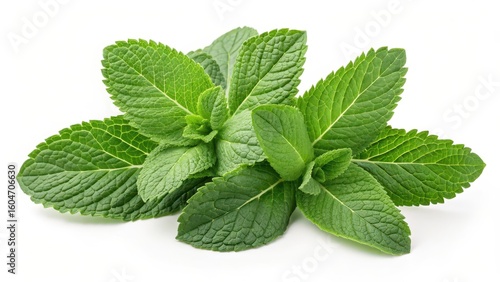 Fresh Green Mint Leaves Arrangement on White Background Ideal for Cooking