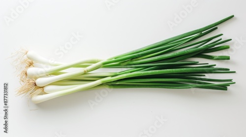 Fresh green onion stalks on a white background