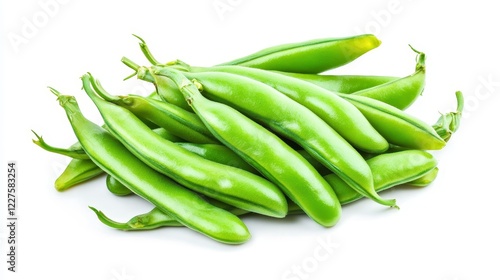 Fresh Green Peas Stock Photo - A pile of fresh, vibrant green peas, isolated on a white background. Perfect for healthy food, agriculture, and cooking websites.