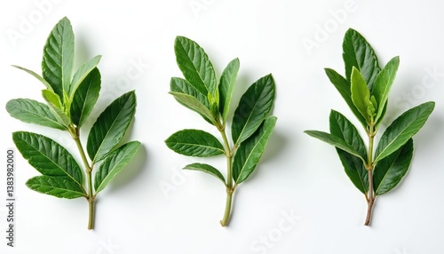 Fresh green sage herb sprigs isolated on white background. Botany plants closeup. Used for culinary cooking, herbal medicine, alternative healthcare, spa treatments. Perfect for design templates,