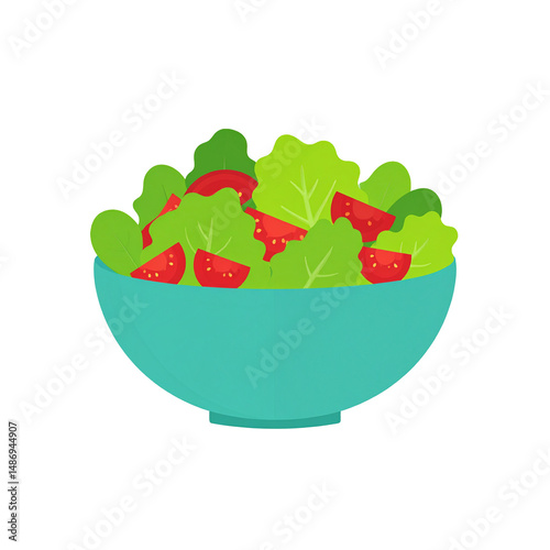 Fresh Green Salad with Tomatoes in a Teal Bowl Healthy Eating Concept