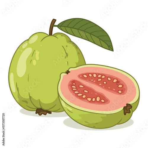 guava, fruit, tropical fruit, illustration, drawing, health food, fresh produce, vector, plant, juicy fruit, summer fruit, healthy eating, natural food, red fruit, green fruit, dessert