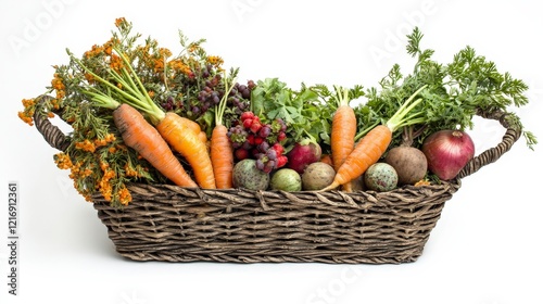 Fresh Harvest Basket with Colorful Vegetables and Fruits Display