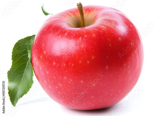 Fresh juicy apple, with a smooth, shiny skin on a white background.