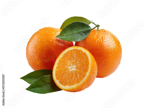 Fresh juicy citrus fruits with green leaves oranges, Isolated, Transparent Png