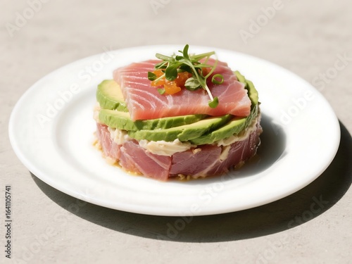 Fresh layers, bold flavors, clean plating,Tuna meets avocado – a match made in culinary heaven