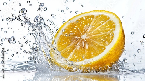 Fresh Lemon Slice with Water Splash on White Background - ai