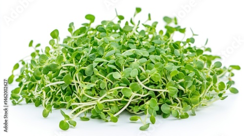 Fresh Microgreens Piled on White Background for Healthy Eating