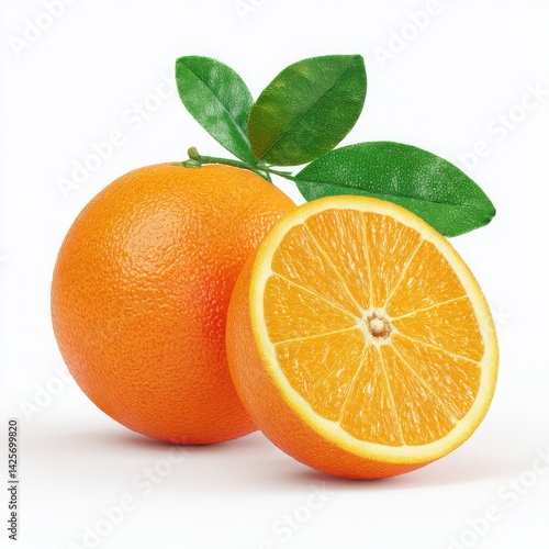orange, fruit, citrous, fresh, slice, leaf, healthy, food, vitamin, ripe, juicy, sweet, nourishment, plant, vegetarian, vegan, ingredient, nature, tropical, close, macro, still, life, vibrant, colours, diet, raw, object, studio, white, background