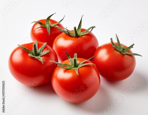 fresh organic tomatoes arranged elegantly on a clean white backdrop for culinary enthusiasts and healthy recipe inspiration