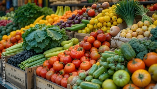 Fresh Organic Vegetables And Fruits Displayed at a Vibrant Farmers Market Stall