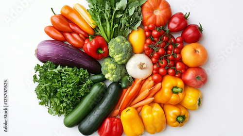 Fresh Organic Vegetables Arranged in a Circular Pattern, Showcasing Vibrant Colors and Natural Beauty