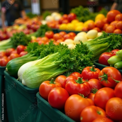 Fresh organic vegetables display at farmers market, farm, variety, local