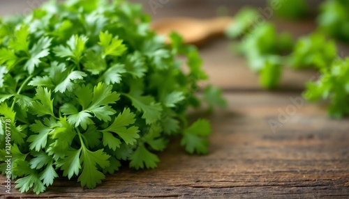 Fresh Parsley on Rustic Wooden Table - Culinary Herb, Healthy Food, Cooking Ingredient
