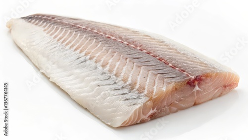 Fresh Raw Fish Fillet with Skin and Natural Texture on White Background