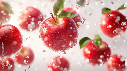apple, red, water, droplet, floating, fresh, juicy, closeup, splash, suspended, vibrant, fruit, healthy, wet, dynamic, refreshing, crisp, ripe, natural, delicious, food, background, macro, detail, motion, clean, purity, hydratation, nourishment, organic, diet, freshness, studio, photo, closeup