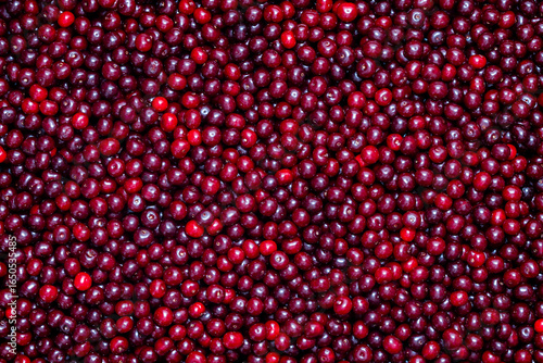 Fresh red cherries piled high showcasing the bounty of summer harvest. Glossy cherries arranged in abundance at a local market. Juicy cherry symbolizing the sweetness and richness of life, closeup