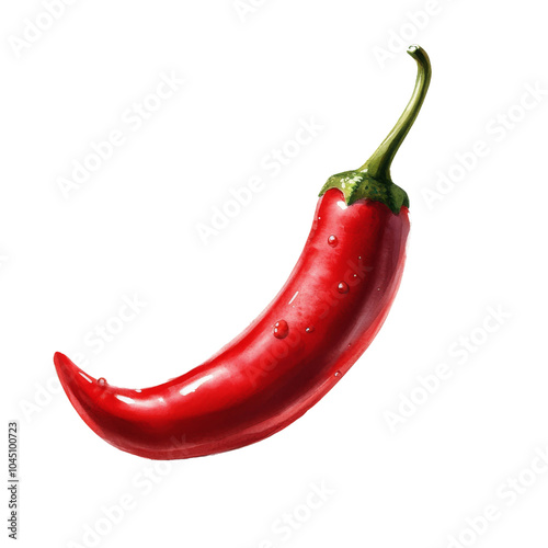 Fresh red chili pepper with water droplets, isolated on a transparent background.
