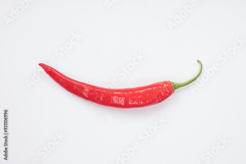 Fresh red chilli pepper on white background. File contains clipping paths. Closeup top view red chili pepper with sliced, raw food ingredient concept. Red hot chili peppers isolated, selective focus.