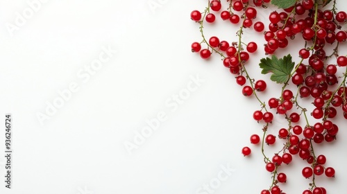 redcurrant, berry, fresh fruit, white background, vibrant color, food photography, healthy eating, garnish, bright red, green leaf, natural light, vegetarian food, vitamin c, antioxidant, raw food, farm fresh, harvest, cooking, food preparation, refreshing, copy space, alimentary, grocery, agriculture, topview