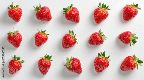 strawberry, fruit, red, pattern, white, background, fresh, healthy, delicious, summer, ripe, sweet, juicy, vitamin c, antioxidant, dessert, food, snack, organic, farm, market, nature, still life, photo, design, graphic, template, minimal, topview