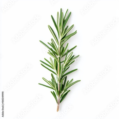 Fresh rosemary herb sprig on a white isolated background.