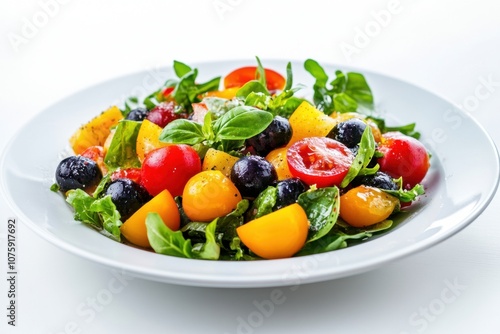 salad, tomatoes, olive, basil, food, fresh, healthy, green, red, yellow, black, vegetable, diet, nourishment, meal, dinner, lunch, delicious, tasty, organic, natural, plate, white, background, isolated, closeup, macro, ingredient, vitamin, colourful, summer, spring, mediterranean, italian, cookery, epicure, eatery, catering, cooking, receipe, dish, side, dressing, oil, vinegar, pepper