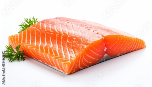 Fresh Salmon: A vibrant slice of fresh salmon fillet, ready for culinary artistry, complemented by a sprig of fresh herbs, a celebration of taste and health.