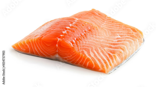 Fresh salmon fillet on white background, showcasing rich texture and vibrant color, emphasizing the quality of raw seafood
