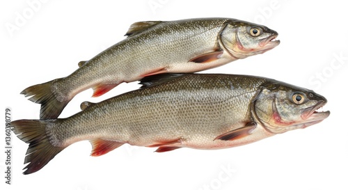 Fresh Sauger Fish Duo on White - Two fresh sauger fish, a culinary delicacy, symbolize purity, nutrition, nature's bounty, aquatic life, and healthy eating.