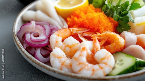 seafood, shrimp, lemon, orange, onion, cucumber, cilantro, wasabi, preparation, fresh, epicure, ingredient, platter, cookery, japanese, meal, dish, decorative, healthy, colourful, tasty, feast, eatery, dining, presentation, table, receipe, summer, coastal, delicacy, texture, appetising, nourishing, elegant, freshness, succulent, culinary, garnish, slice, vibrant, aquatic, enjoyment, bite, favor, aroma, nourishment, savour