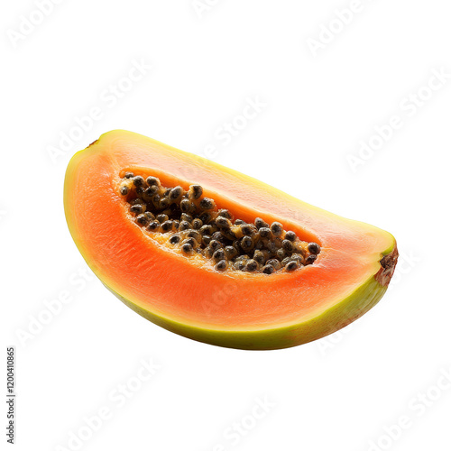 Fresh slice of ripe papaya isolated on a clean transparent background for culinary uses and health benefits, slice ripe papaya isolated on transparent background