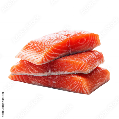 Fresh Stacked Raw Salmon Meat Clean Cut Fillets on Transparent Background