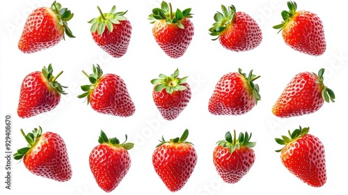 Fresh Strawberries In Different Arrangements, Isolated On White Background, Great For Food Packaging And Healthy Eating Campaigns . Generative ai
